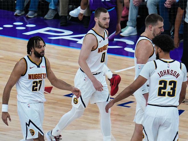 直到收官阶段,12连胜,说发力就发力,最终落到和马刺一个半区,算上森林狼和潜在的西部第七(开拓者的几率大一些),这个半区有悬念么?约基奇虽然整个生涯,没在季后赛击败过50+胜场的球队,但本赛季似乎能改写这一历史,因为恰好遇到的是年轻的马刺,以及羽翼尚未丰满的文班亚马!还有一点不能忽略,掘金本赛季虽然几位主力饱受伤病困扰,但也意味着休息的时间足够多,特别是戈登和卡梅伦约翰逊,就等着季后赛发力呢!再算上收官战不打,中间还有附加赛,掘金这些核心,又能休战1周时间。