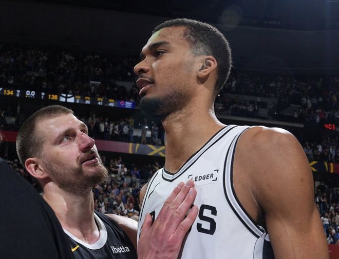 本赛季两队四次交手,掘金3胜1负,但最近三次交手,掘金全胜!从2月1日开始,马刺最近这34场比赛,一共就输了4场,其中三场输给了掘金!打不过掘金的原因很简单,马刺锋线高度和对抗不够,文班亚马和约基奇相比,防守端如果是64开的话,进攻端约基奇带动队友的能力,文班亚马比不上。关键马刺都是小后卫,掘金的进攻能力本赛季联盟第一!站在主帅小阿德尔曼的角度,掘金为什么要怕马刺?就以文班亚马和约基奇最近一次交手为例,掘金加时136-134险胜马刺,约基奇爆砍40分8篮板13助攻,没有失误。