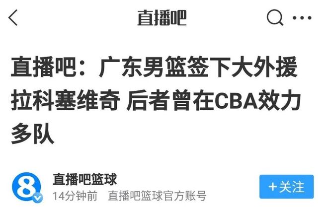 广东男篮最近的情况比较糟糕,主要是球队出现了不少伤病,就连主教练杜锋都因为肠胃疾病暂时离队了。按照媒体透露的消息,广东男篮一直都有再签一名大外援的计划。就在日前,这件事终于有了确切的消息,据国内媒体直播吧透露,广东男篮已经和大外援拉科塞维奇达成了签约意向,目前球队正在为拉科办理相关手续,很快就会对此事官宣。