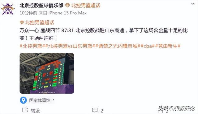 北京时间4月15日,CBA常规赛,北控男篮开局落后12分的情况下,第二节和第三节奋起直追,一度轰出一波18-3的攻势接管比赛,终场前1分30秒被缩小至4分差距,但北控顶住压力拿到了关键的比赛胜利。