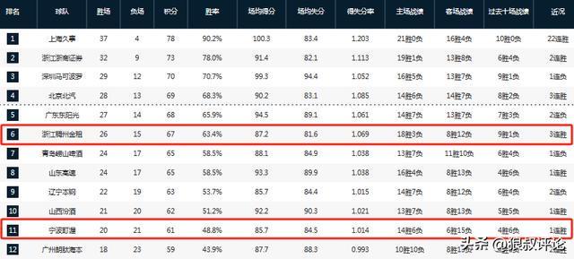 宁波上一轮主场击败吉林后,总战绩来到了20胜21负,锁定季后赛名额的同时,也来到了积分榜第十一的位置。