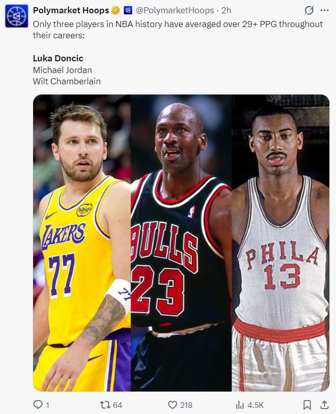 13.场均得分超过29分的球员只有东契奇、乔丹、张伯伦;