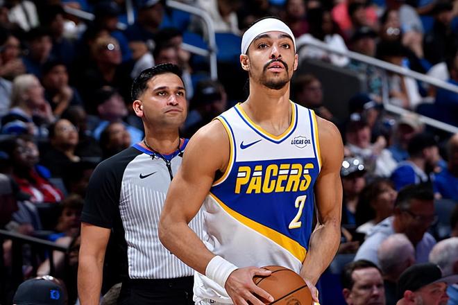 本场比赛中,步行者虽然输掉了比赛,但是球队的后场大将安德鲁-内姆哈德(Andrew Nembhard)的表现算得上是令人刮目相看。内姆哈德全场出场33分34秒,投篮9中3,三分线外6中2,罚球6中6,得到了14分2篮板19助攻的数据,还有2次失误和4次犯规,正负值为+4。值得一提的是,19次助攻也是刷新了内姆哈德职业生涯的单场新高。内姆哈德在进攻端并没有找到自己的手感,他的得分能力和投射能力都没有完全发挥出来,也没有得到太多的分数。然而他在进攻梳理方面的表现是现象级的,他不断给队友送出妙传,起到了关键的作用。除此之外,内姆哈德在防守端的表现其实也是不错的,也是同样在防守端有着尚可的表现。球队虽然输球了,但是内姆哈德的正负值为+4,这也能够说明他在场上时球队的局面也是不错的。