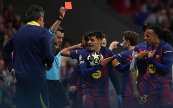 下半场巴萨全力反扑,费兰破门却因越位被VAR吹掉,翻盘希望遭重挫;第80分钟,埃里克·加西亚作为最后防守球员,背后放倒单刀的瑟洛特,被直红罚下,巴萨只剩10人应战。少打一人的巴萨虽疯狂围攻,莱万、阿劳霍多次制造威胁,但始终未能破门,最终2-1赢下比赛,却总比分2-3出局。