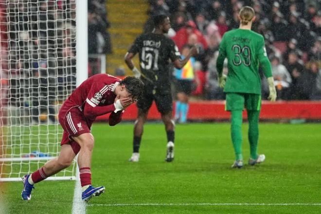 真正的打击是第28分钟埃基蒂克受伤,他是比赛开端最活跃的球员。法国前锋3次尝试站起都无能为力,最终被担架抬出。利物浦刚看到一点起色的逆转希望,就此彻底被抹杀。埃基蒂克和伊萨克两位转会费总额达2.4亿欧元的高价射手,本赛季仅3次联袂首发。再加上维尔茨,3位转会费合计3.65亿欧元的巨星,迄今仅合作了117分钟。不仅如此,连同科尔克兹和弗林蓬,5名高价新援此役居然赛季以来首次一起首发。或许,这已说明了一切。