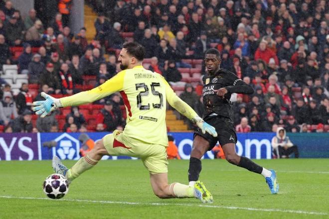两队的首回合较量。利物浦客场全面退守但仍0-2输球。此役回到主场,瑞典前锋伊萨克首发出战,埃基蒂克和维尔茨分居两翼,麦卡利斯特则居中策应。比赛开始后,背水一战的利物浦确实凭借主场之利打出了气势,不过大巴黎的反击也非常犀利。比赛进行到第28分钟,利物浦遭遇重击,埃基蒂克无对抗受伤倒地,萨拉赫紧急入替。而在第37分钟,大巴黎左后卫门德斯也受伤无法坚持被卢卡斯-埃尔南德斯换下。上半场,双方0-0握手言和。