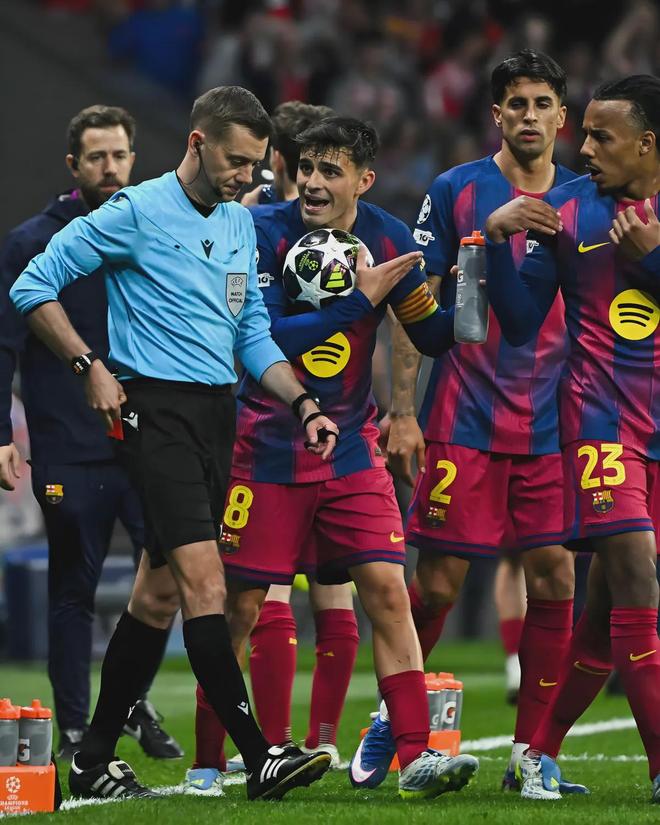 第55分钟,费兰补射破门,VAR划线显示越位仅几厘米。如果那球算进,总比分将扳为3-3,比赛走势将彻底改写。第24分钟费尔明头部受伤导致比赛中断时,正是巴萨攻势最盛、马竞防线摇摇欲坠的时刻。第41分钟奥尔莫在禁区内被马科斯·略伦特双手推倒,裁判未予理会——而同样的动作在另一端导致了加西亚的红牌。