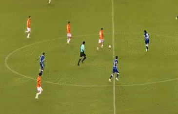 原来这位球员是故意的,从替补席一路小跑到马宁身后,就是为了顶撞一下。好在没有用力冲撞,否则又要重演当年河南队外援多拉多的一幕(下图)。不完全统计,这应该是马宁第二次在赛场中被球员从背后冲撞。跟多拉多的赛后报告类似,马宁肯定会把这事记录上去,到时候这位吉达联合球员就等着追罚吧。