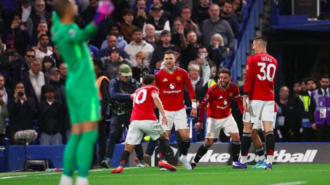 下半场开始后,曼联率先发难,库尼亚巧妙做球,B费禁区外射门没能命中目标。