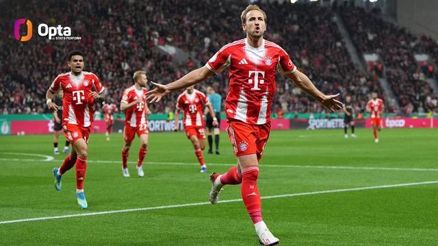 此役对阵勒沃库森打入一球后,凯恩本赛季德国杯代表拜仁出场5次已打入7球。