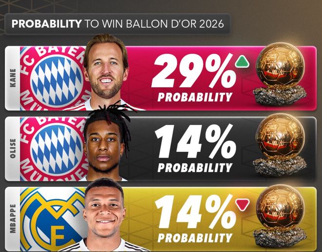 虽然赛季还没有结束,但是欧冠四强已经决出,也让金球奖的预测排名发生了变化。在此前的很长一段时间里,亚马尔都是今年金球奖的最大热门,但是巴萨被马竞淘汰,亚马尔的排名也下滑到了第4的位置,排名前3的分别是拜仁的凯恩和奥利塞,以及效力于皇马的姆巴佩,再加上排名第5的登贝莱,成为了今年金球奖5大热门球员。有意思的是,这几位球员的国家队,同样也是今年世界杯的热门球队。