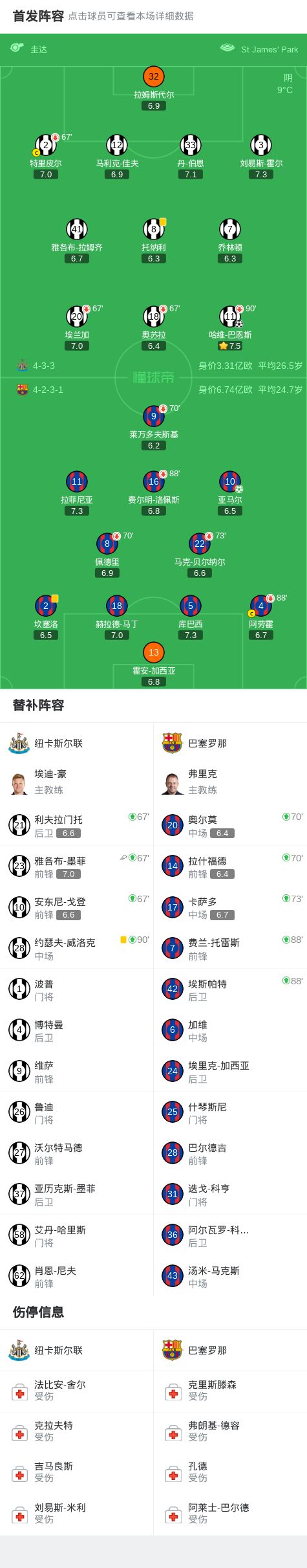 护肝易善复丨巴恩斯中路跟进推射破门,纽卡1-0巴萨