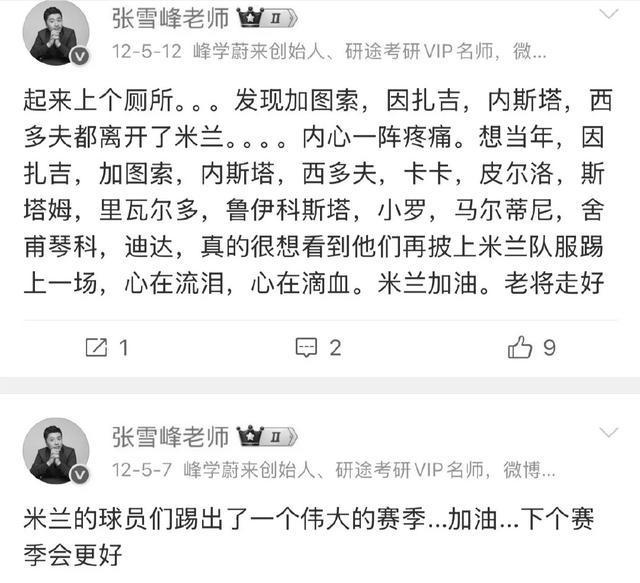 张雪峰亦是如此,即便后来身处忙碌的教育行业,依旧放不下这份热爱,会关注米兰的每一场比赛,为球队的复兴欣喜,为低谷默默坚守。