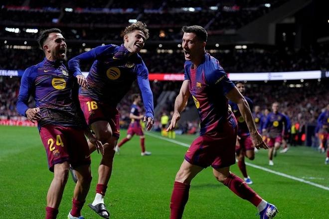 而随后登场的巴萨,也没有浪费皇马送出的大礼。尽管巴萨在客场同样落后马竞,但他们却再次上演逆转好戏,丢球后仅3分钟便由拉什福德扳平。第87分钟,莱万有些幸运的破门帮助巴萨带走3分。此役获胜后,巴萨各项赛事4连胜。