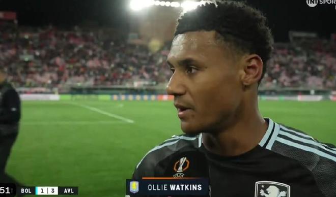 在客场3-1战胜博洛尼亚的赛后,本场比赛梅开二度的维拉前锋沃特金斯接受了TNT体育的采访。